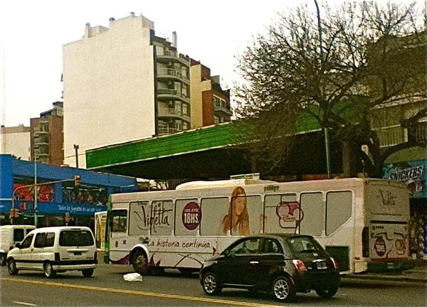 No coletivo continha informações sobre a novela da Disney e uma foto de Martina Stoessel, a Violetta. Logo abaixo estava escrito: "La historia continua". Demais não é? Vejam a imagem logo abaixo: